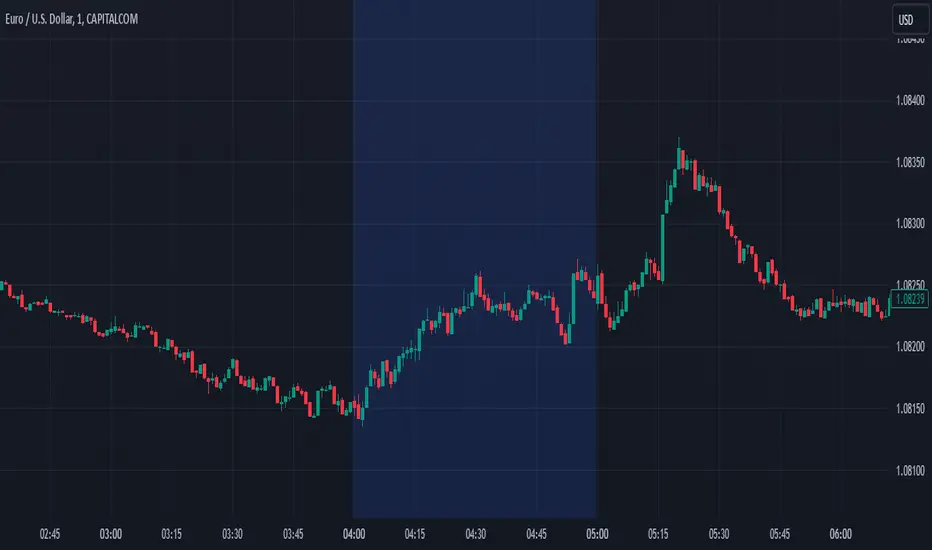 Clear Visual Highlight: Colors the background of your chart during the chosen timeframe, making it easy to see when your trading session starts and ends.