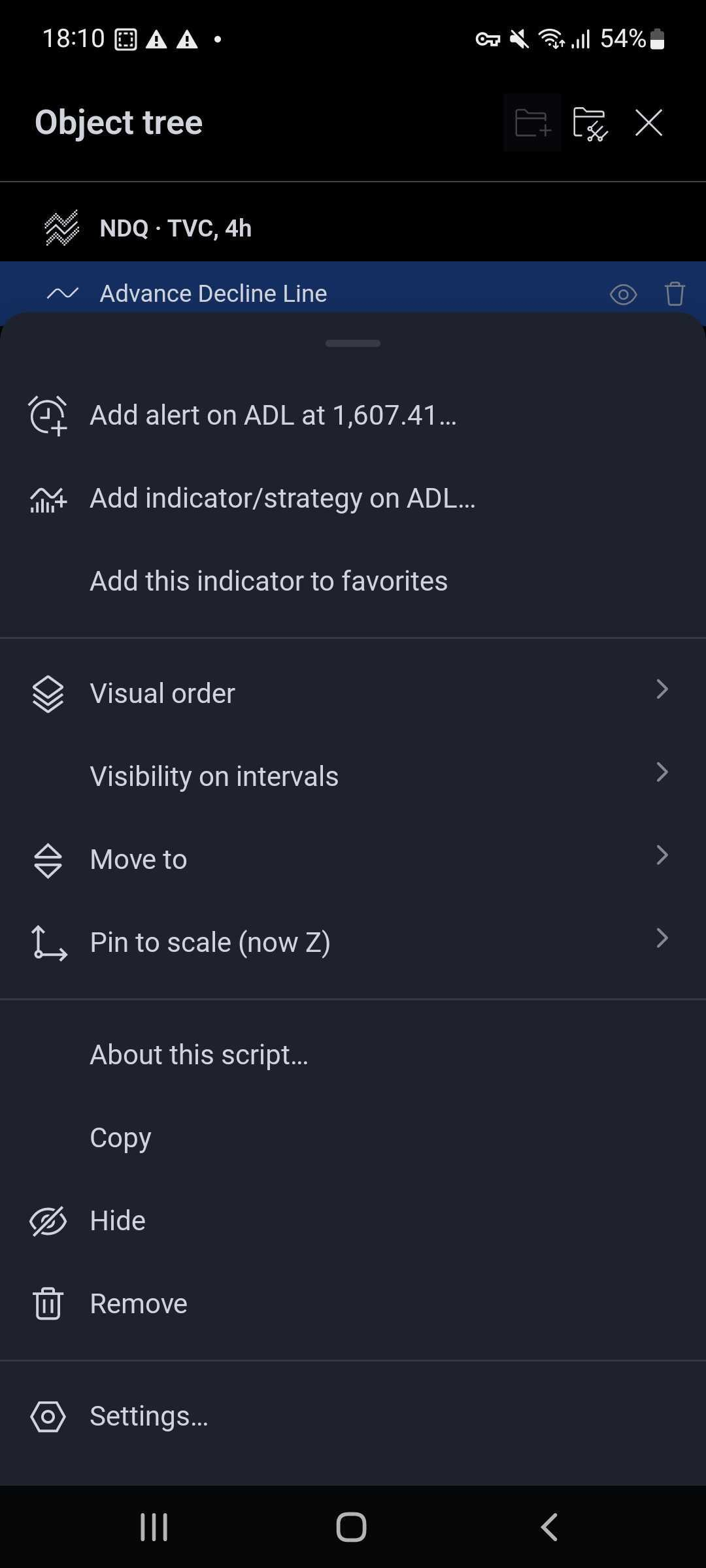 - Seleccione el indicador necesario y cambie su configuración de visibilidad en la ventana emergente: