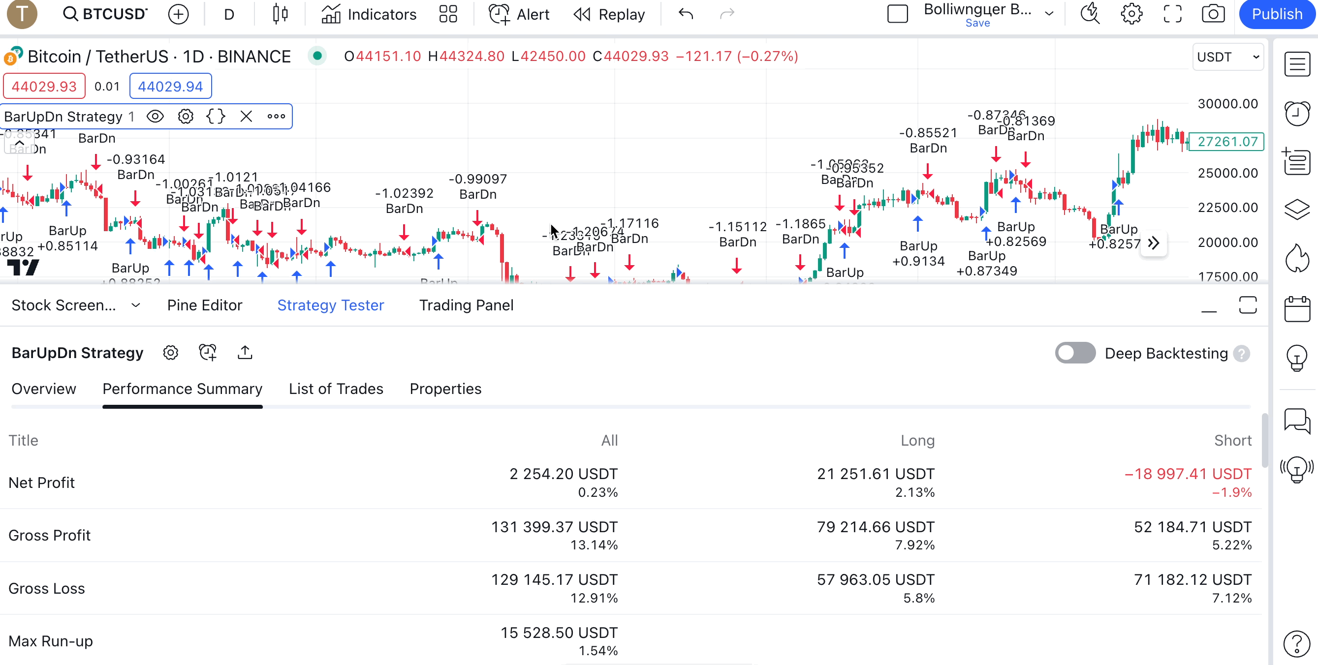 A medida que los datos se actualizan en el gráfico, el informe también se actualizará. Esto es forwardtesting.