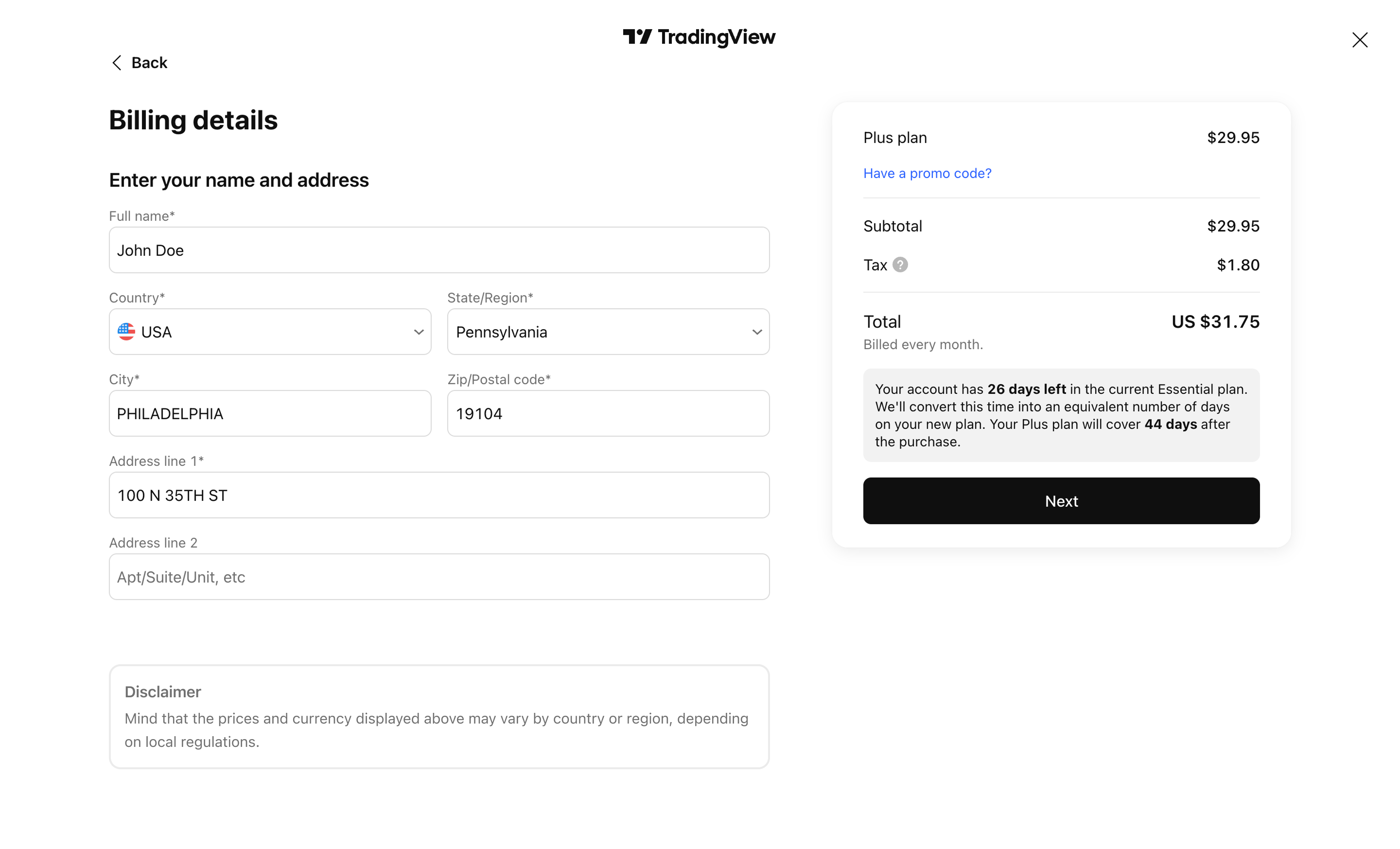 - Tienes una suscripción mensual Essential (le quedan 26 días).