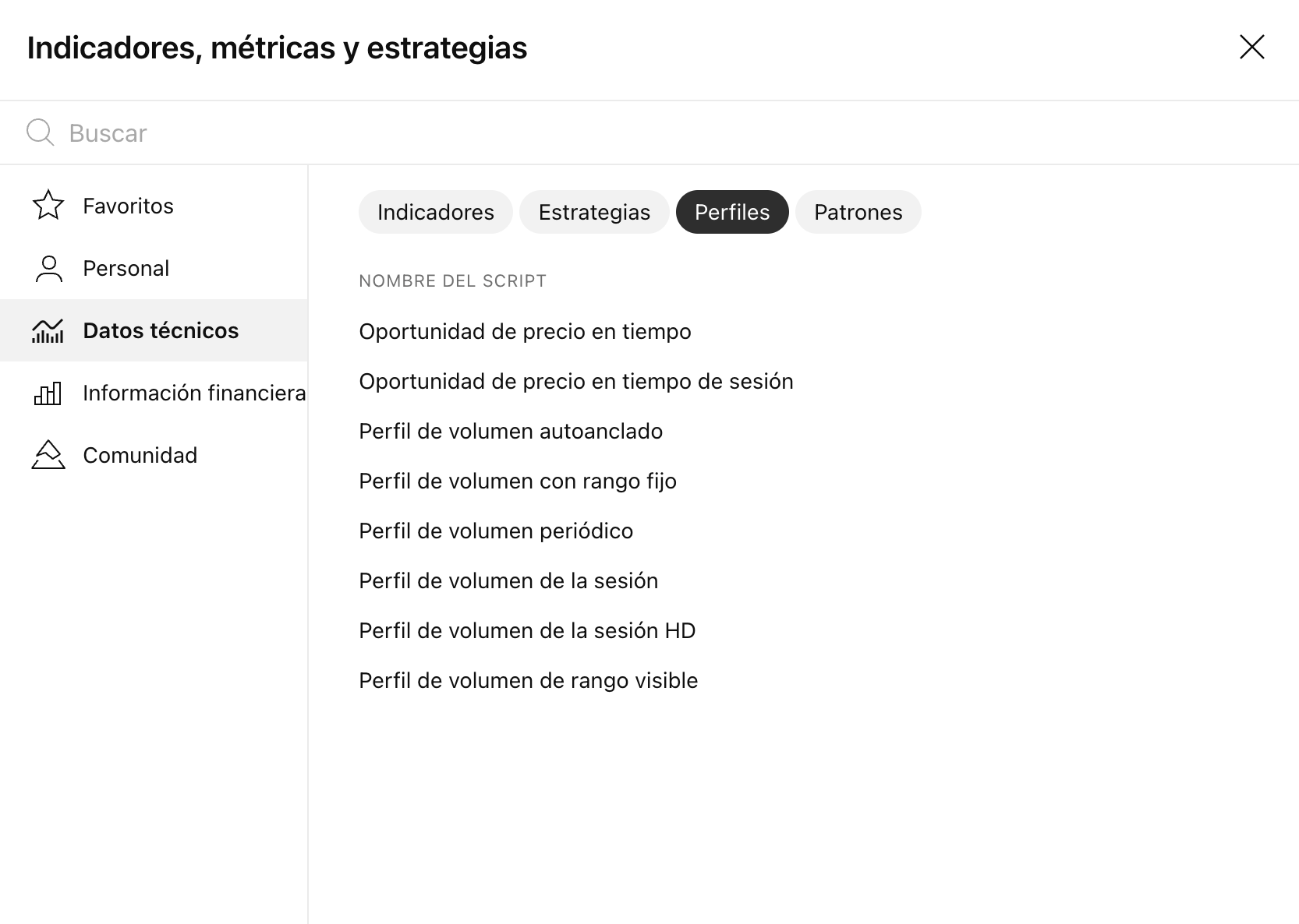 Hemos ordenado nuestra Biblioteca de indicadores y los indicadores de Perfil de volumen se han trasladado a una pestaña separada en la sección Perfiles.