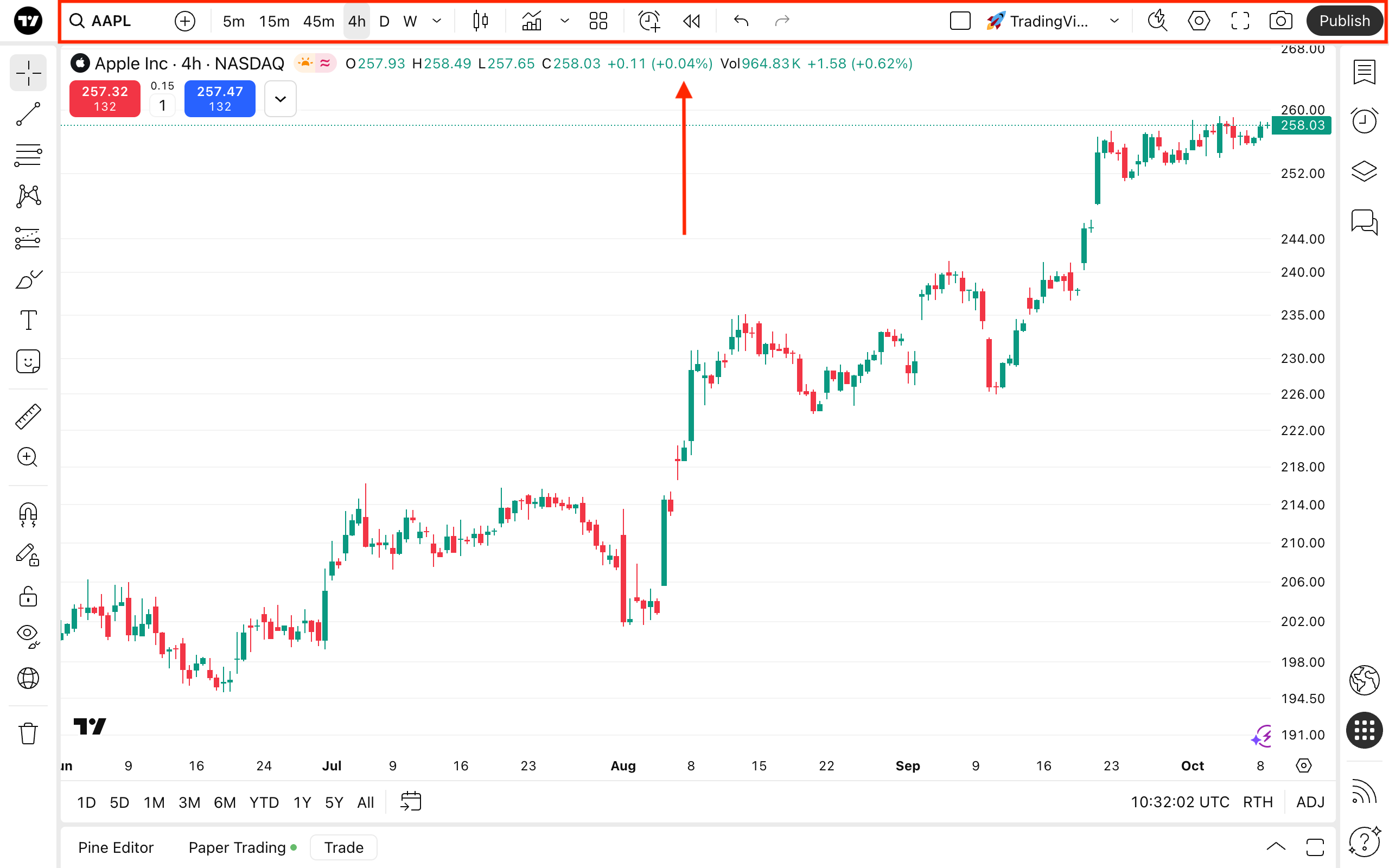- Editor de Pine: Cree indicadores y estrategias únicos con Pine Script®, gestiónelos, añádalos instantáneamente al gráfico y compártalos con otros traders