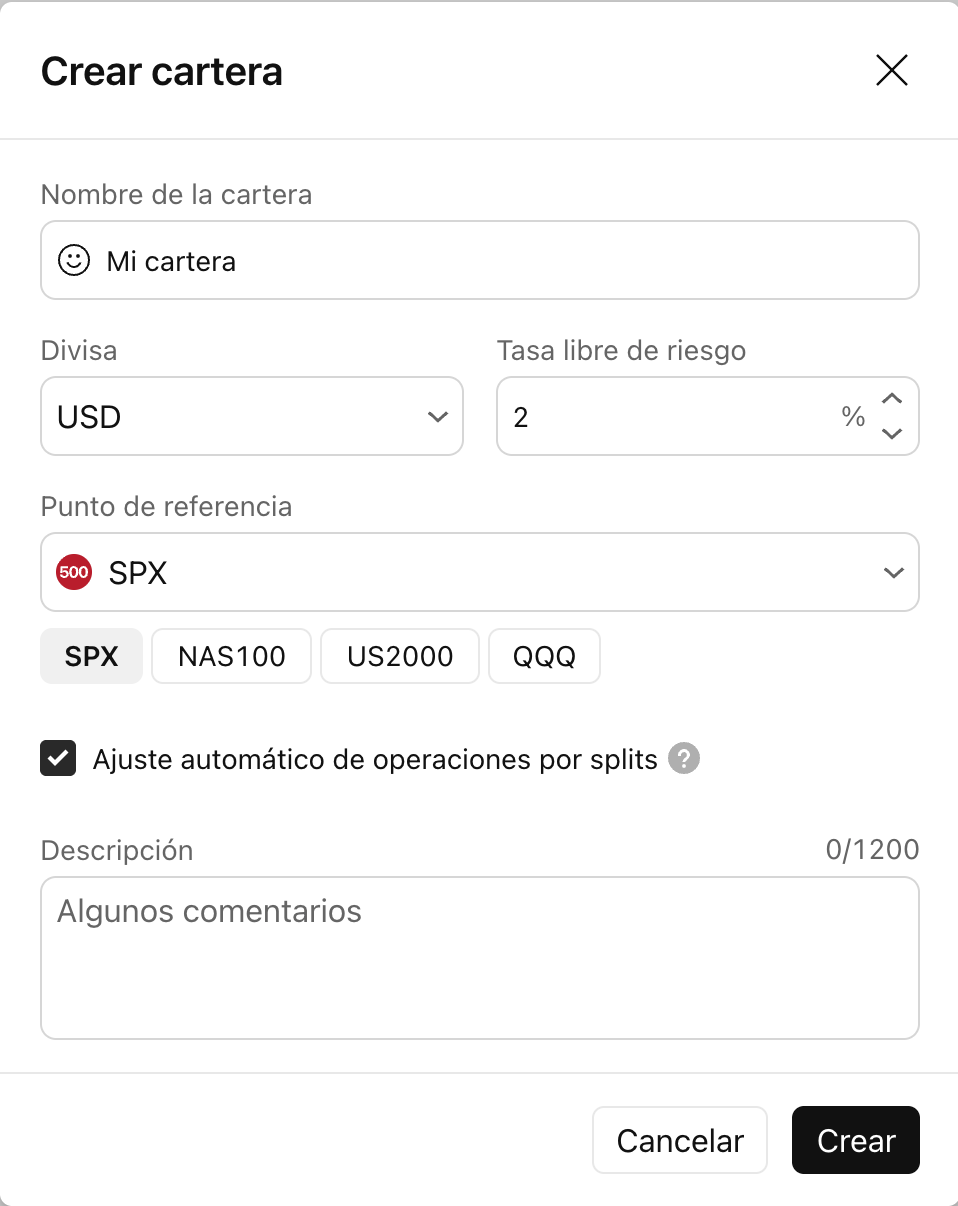 - Descripción (opcional): descripción de la cartera.