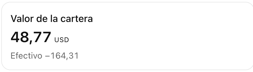 Refleja el valor total actual de la cartera del usuario en la divisa de la cartera, teniendo en cuenta el efectivo disponible y el valor actual de las posiciones abiertas.