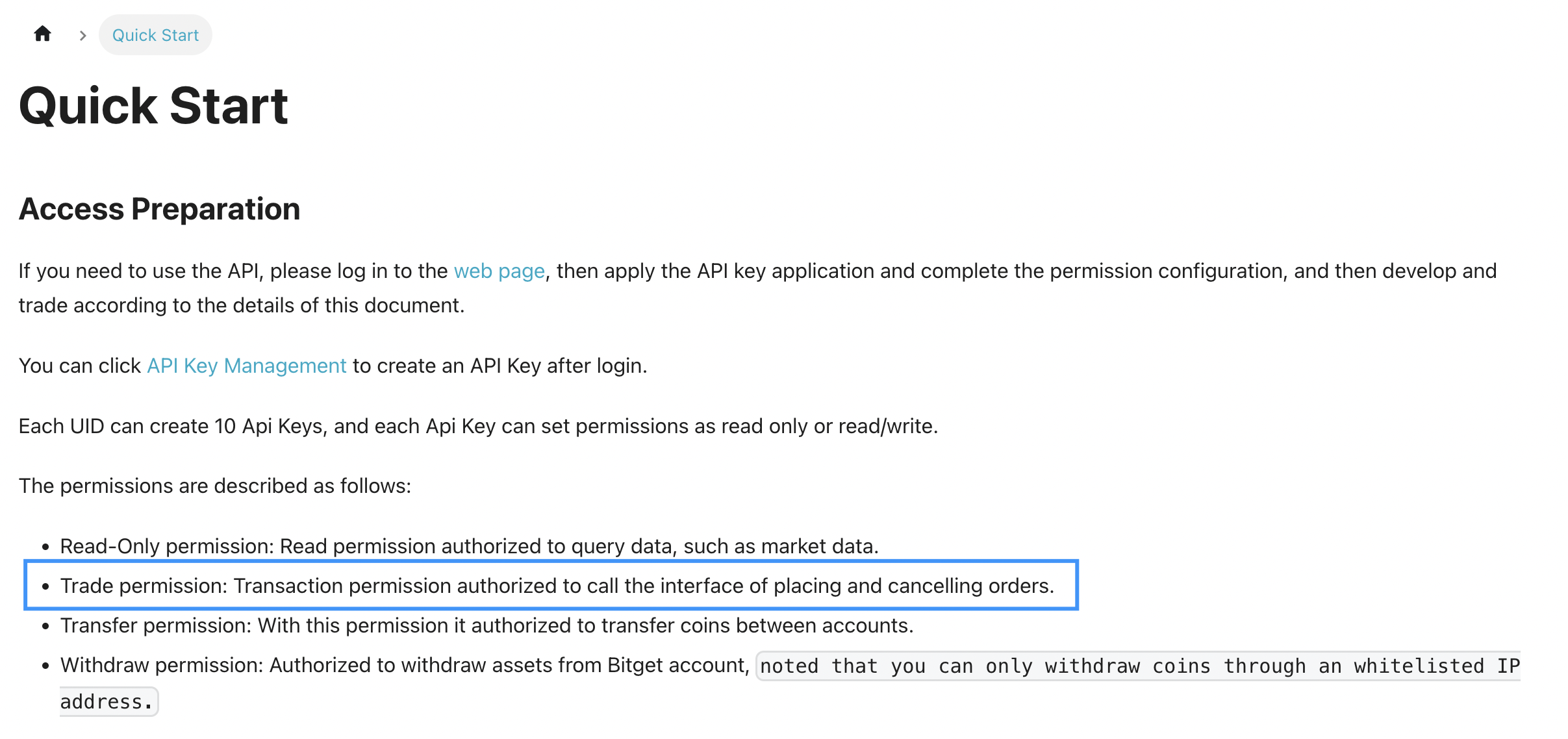 Recibo el error «Incorrect permissions, need trade permissions» en Bitget