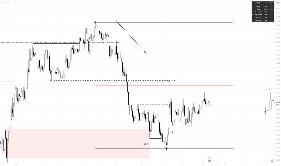 Analisis Tecnico del 10/02/2026podemos ver un DXY consolidado en una zona de reacción de igual manera el EURUSD .