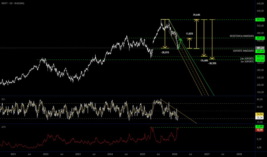 Mientras MSFT se mantenga dentro y por encima de la zona de demanda marcada, el contexto favorece un potencial giro alcista de medio plazo. La confirmación debe venir acompañada de estructura y volumen, especialmente en la ruptura de la resistencia intermedia.
