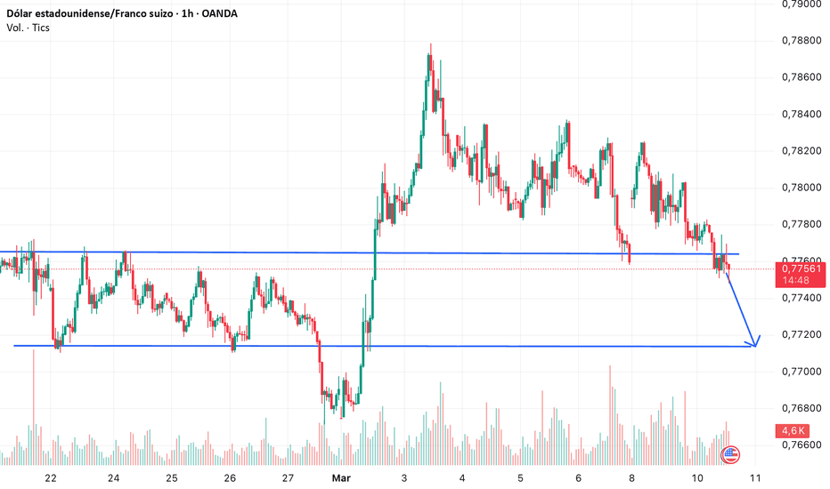 USDCHF - ruptura del nivel espejo principal 0,7750El franco suizo es la moneda más lateral entre los países desarrollados. Casi nunca se mueve en tendencia frente al dólar y al euro.